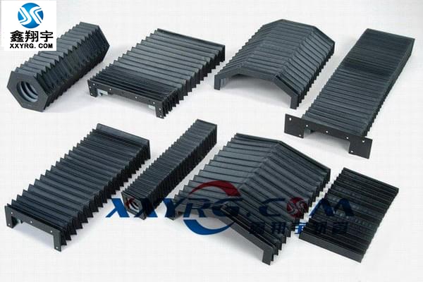 風琴式防護罩用尼龍革、塑料織物或合成橡膠折疊、縫制或熱壓而成,內有PVC板材支撐,可耐熱、耐油、耐冷卻液、最大接觸溫度可達400℃,非常大行程速度可達100m/min,根據用戶要求、風琴式護罩除生產平面風箱式以外上面可代不銹鋼片,也可生產圓形,六角形、八角形等。