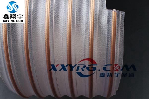產品特點:半透明PU管壁, 帶鍍銅色包塑鋼絲螺旋加強 -40°C / + 90°C (短時間可耐受125°C) 聚酯型聚氨酯(ESTER PU)軟管, 帶鍍銅色包塑鋼絲螺旋加強筋。內壁平滑, 以保證物料在管內流動順暢. 和傳統的橡膠軟管和PVC軟管相比具有極高的耐磨度和使用壽命。不同規格產品的壁厚相同, 均為0.9毫米。耐礦物油、耐化學品。具有優異的耐臭氧和耐候性,低溫下仍能保持很好的柔軟度。不含鹵素,符合RoHS環保指令要求,原材料符合 REACH的規定。螺旋鋼絲接地可以排靜電, 符合TRB S 2153的排靜電標準。 用于顆粒、磨損性粉末、刨花或鋸末的抽吸和傳輸。適合塑料行業、陶瓷行業的物料傳輸或除塵等。在掃地車、路面清潔車、除草機等設備上也得到廣泛的應用。